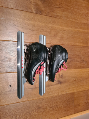 Lees meerVanwege mijn leeftijd skeeler ik niet meer. De schoen, maat 42, is van hard carbon die door te verwarmen naar de voet gezet kan worden.